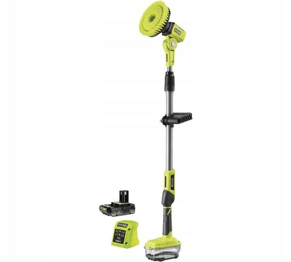 Obrotowa teleskopowa szczotka do czyszczenia 18V, idealna do bezproblemowego czyszczenia drzwi garażowych, ścian i samochodów.
