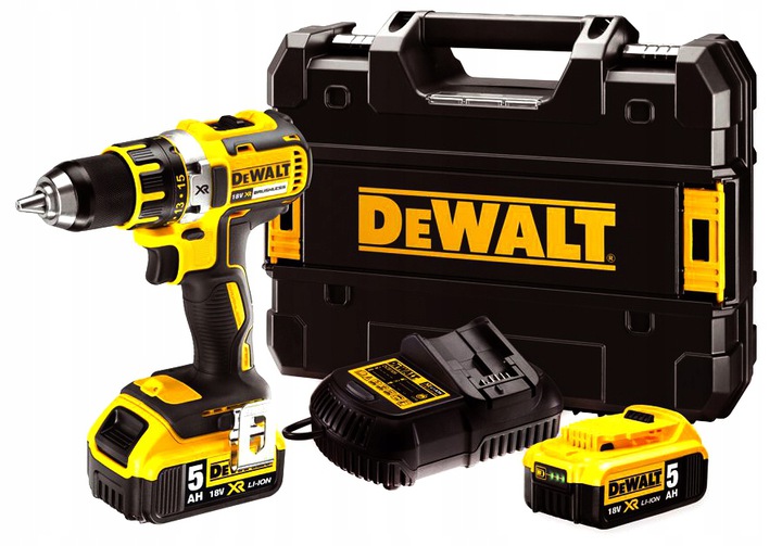 Kompaktowa wiertarko-wkrętarka XR 18 V wyposażona w NOWE akumulatory 5,0 Ah XR w technologii litowo-jonowej