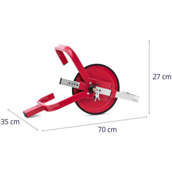 Uniwersalna blokada na koło marki Stamony pozwala zabezpieczyć samochody, SUV-y, autobusy, ciężarówki lub przyczepy przed kradzieżą, holowaniem lub innymi działaniami. Obsługa urządzenia jest bardzo łatwa, zaledwie w ciągu kilku sekund można przymocować lub zdjąć blokadę. Kompaktowe wymiary 70 x 35 x 27 cm sprawiają, że bez problemu zmieści się w każdym aucie. Blokada wykonana została ze stali o wysokiej wytrzymałości. Jej konstrukcja jest wodoszczelna odporna na zużycie i odkształcenia. Malowanie farbą antykorozyjna w kolorze czerwonym sprawia, że blokada jest widoczna nawet o zmierzchu. W komplecie znajdują się 2 klucze.