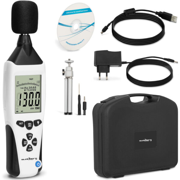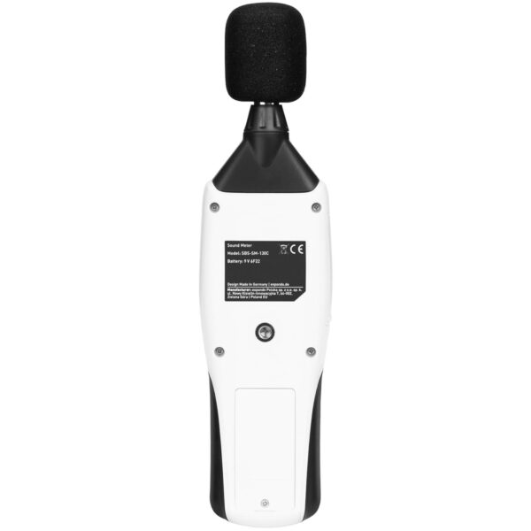Osłona zamontowana w mierniku dźwięku redukuje wpływ wiatru i ruchu powietrza na mikrofon, chroni go przed uszkodzeniem i zapobiega dostawaniu się pyłków i innych nieczystości. Produkt marki Steinberg Systems posiada wbudowany alarm poziomu dźwięku, pokrywę komory baterii ze śrubą oraz opcję automatycznego wyłączania, która oszczędza żywotność baterii. Sonometr pozwala na badanie hałasu zarówno w pomieszczeniach oraz biurach (filtr typu A), jak i w przypadku dźwięku wytwarzanego przez maszyny (filtr typu C).