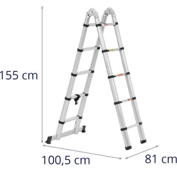 - – Drabina wykonana jest z trwałego i wytrzymałego aluminium i zniesie obciążenie do 150 kg.