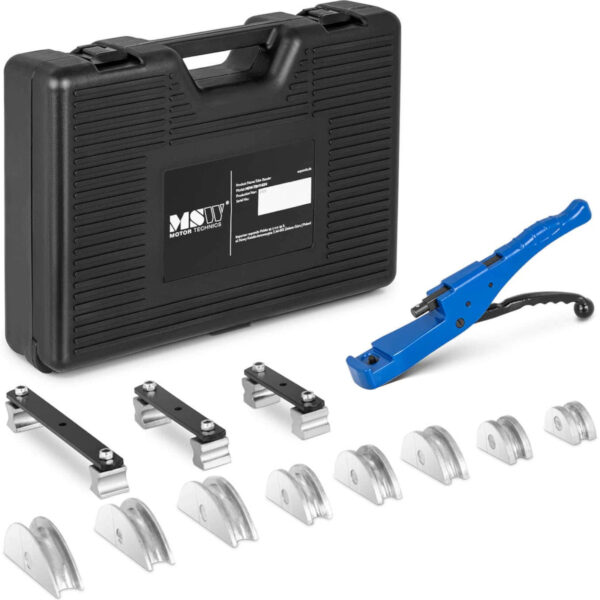 Giętarka firmy MSW sprawdzi się doskonale podczas kształtowania rur XPAP, PEX i miedzianych o grubości ścianki do 1 mm. Praktyczny sprzęt nada się dla hydraulików, monterów instalacji grzewczych, budowlańców oraz wszystkich majsterkowiczów. Wysoka efektywność gięcia nawet do 90deg;. Dzięki temu można wykonać idealnie równe kolanko. Cały proces przebiega gładko i nie uszkadza rurki. Akcesoria, które dołączono do zestawu, pozwolą przystosować giętarkę do obrabianego materiału. W zestawie znajduje się 8 wymiennych głowic o rozmiarach 10 mm, 12 mm, 14 mm, 15 mm, 16 mm, 18 mm, 20 mm i 22 mm. Wszystkie elementy zmieszczą się w poręcznej walizce z tworzywa sztucznego. Solidne wykonanie ze stopu aluminium i szerokie zastosowanie sprawią, że giętarka będzie stanowić idealne narzędzie w wielu warsztatach. Obsługa urządzenia jest bardzo prosta i poradzi sobie z nią zarówno profesjonalista, jak i amator.