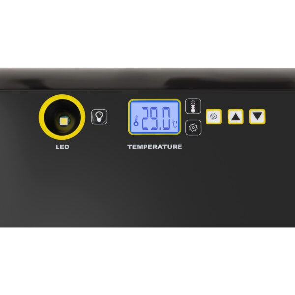 Urządzenie wyposażone zostało w panel sterowania, który pozwala kontrolować parametry procesu. Wbudowany owoskop LED pozwala sprawdzić rozwój zarodków. Inkubator posiada system automatycznego obracania jaj oraz inteligentną kontrolę temperatury. W urządzeniu zastosowano silnik o mocy 40 W, energooszczędny i bardzo wydajny.