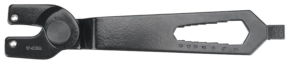 Dzięki regulowanemu rozstawowi szczęk pozwala na dokręcanie i odkręcanie nakrętek mocujących tarcze w szlifierkach kątowych o średnicach od 115 do 230 mm.