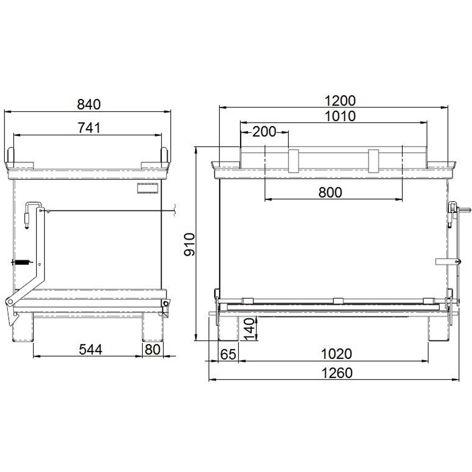 - – wymiary zewnętrzne: 1260 x 840 x 910 mm