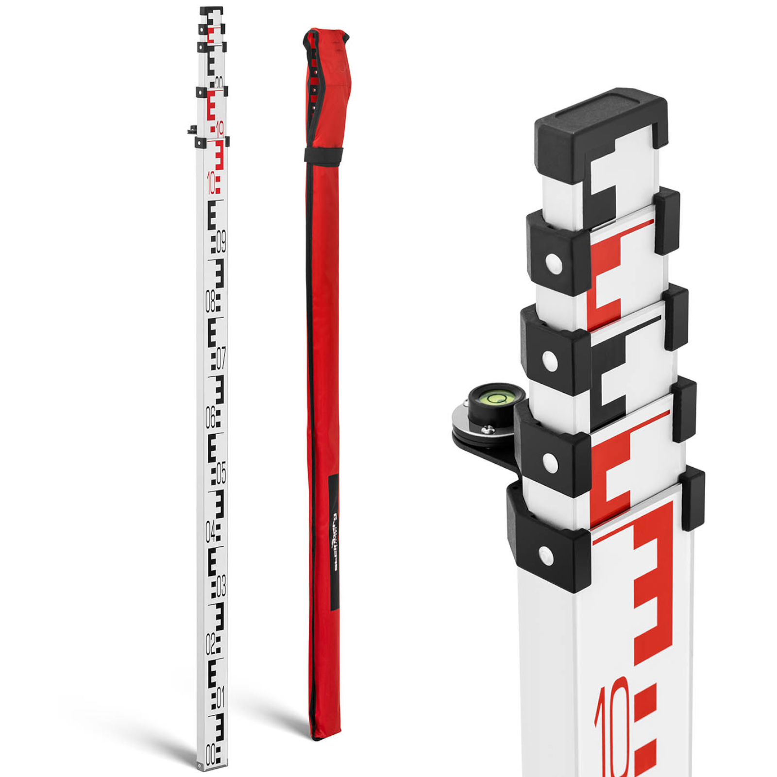 Składana łata niwelacyjna marki Steinberg Systems to doskonałe akcesorium dla każdego geodety i budowlańca. Wykorzystanie aluminium wpływa na odporność na trudne warunki panujące na placach budowy. Materiał jest jednocześnie niezwykle lekki, więc praca z listwą nie wymaga większego wysiłku. W transportowaniu całości pomoże dołączony do zestawu futerał z paskami i zamknięciem na rzepy. Składana konstrukcja 5-częściowej łaty niwelacyjnej znacząco ułatwia jej przechowanie oraz dostosowanie do potrzeb. Złożona tyczka ma długość 1,23 m, a po rozłożeniu 5 m. Dwa rodzaje miar: z przodu – cm z podziałem geodezyjnym (E), a z tyłu – mm. Do stabilnego ustawienia produktu służy dodatkowa libella.