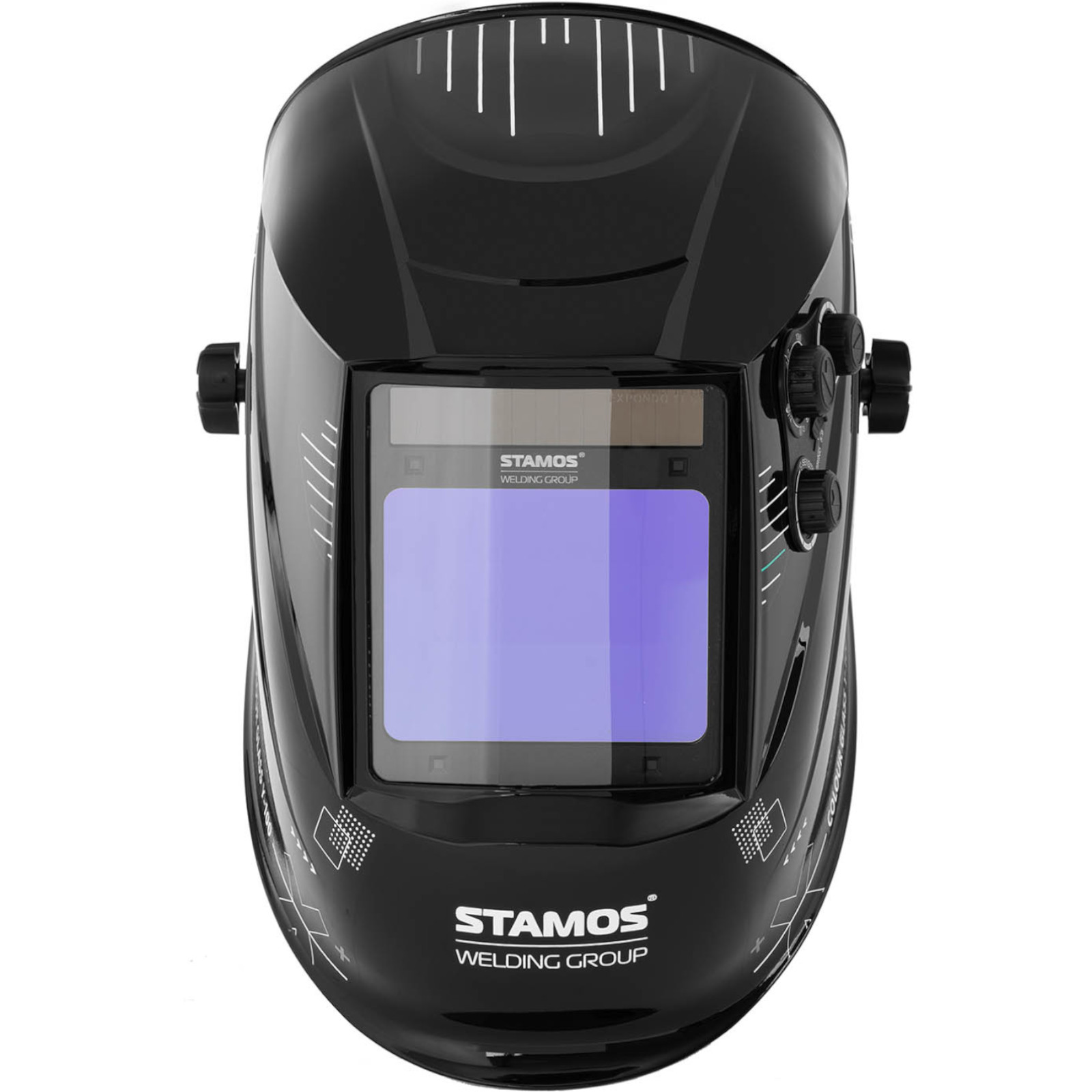 Maska spawalnicza marki Stamos Germany zapewnia ochronę podczas spawania elektrodami oraz gazem obojętnym. Oferuje pełną perspektywę w kolorze. Automatyczna przyłbica posiada regulowany zakres ochrony przed światłem DIN 4/5-9/9-13. Autotest pozwala dopasować osłonę świetlną do różnych potrzeb. Pole widzenia ma wymiary 100 x 80 mm. Trwały wkład COLOUR GLASS Y-100 zasilany jest ogniwami słonecznymi i zawiera wymienną baterię CR2450 o żywotności 5000 godzin. Przyłbica wykonana została z tworzywa sztucznego, jest niezwykle lekka, waży tylko 0,6 kg. Zastosowana mieszanka materiałowa wykonana z poliamidu 66 i PC jest sztywna, twarda, odporna na ścieranie i działanie wysokich temperatur. Bardzo krótki czas reakcji 1/25000 s od jasnego do ciemnego chroni przed szkodliwymi promieniami łuku. Nie obciąża nadmiernie oczu i nie wymaga długiego okresu przyzwyczajania się do dalszego spawania. Zapewnia także ochronę przed promieniowaniem UV/IR przy wszystkich poziomach jasności do DIN 16. Funkcja GRIND umożliwia wykonywanie innych prac metalowych takich, jak szlifowanie, bez zdejmowania maski.