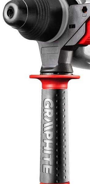 Młotowiertarka SDS+ 900 W, 3,4J, walizka 58G539 marki GRAPHITE to specjalistyczne narzędzie SDS+ o mocy 900 W, posiadające funkcje wiercenia oraz wiercenia z udarem pneumatycznym. Umożliwia wykonanie otworów do 28 mm średnicy w betonie i cegle, 13 mm w stali oraz 30 mm w drewnie. Narzędzie posiada funkcje zmiany kierunku obrotu wrzeciona, stopniowej regulacji prędkości i blokadę włącznika do pracy ciągłej. Podczas wiercenia młotowiertarka osiąga do 950 obrotów na minutę, a po przełączeniu na udar (funkcja udaru uruchamia się w trakcie docisku wiertła do powierzchni wierconej) – do 5300 uderzeń na minutę. Energia udaru w narzędziu wynosi 3,4 J. Wygodna funkcja ,,click” przeznaczona jest do szybkiego mocowania wiertła. Komfortowa rękojeść główna narzędzia pokryta jest antypoślizgową nakładką, dobrze więc leży w dłoni. W zestawie znajdują się: dodatkowe wiertła, uchwyt wiertarski, adapter do uchwytu, listwa ogranicznika głębokości wiercenia, obrotowa rękojeść dodatkowa, zasobnik ze smarem oraz walizka tra
