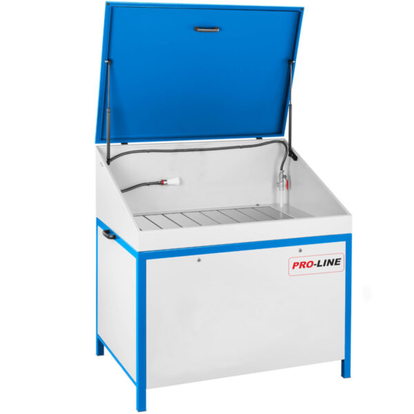 Ekologiczna myjka warsztatowa z zamkniętym obiegiem płynu czyszczącego spełniająca wysokie standardy jakościowe. Myjkę warsztatową wykonano z wysokiej jakości materiałów stalowych i zabezpieczono trwałą proszkową farbą antykorozyjną. Stół do mycia części i urządzeń doskonale spełni swoje zadanie w produkcji przemysłowej wyrobów metalowych, w warsztatach naprawczych i remontowych, oraz wszędzie tam, gdzie proces technologiczny nakazuje odtłuszczenie i mycie powierzchniowe wyrobów.