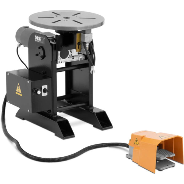 Obrotnik spawalniczy marki MSW ułatwi pracę dzięki wszechstronnym opcjom regulacji i mocowania do łączenia ręcznego, półautomatycznego lub w pełni automatycznego. Obrotowy stół do spawania umożliwi również ergonomiczną, bezpieczną i precyzyjną pracę podczas cięcia, szlifowania lub montażu. Stabilnie utrzymuje obrabiane elementy w jednej pozycji i zapobiega ich przesuwaniu. Dzięki udźwigowi 350 kg w pozycji poziomej i uniwersalnej płyty nośnej, pozycjoner można wykorzystać do różnych elementów. Na stole roboczym można spawać bezpiecznie i bez uporczywych uników. Rezultat, to precyzyjne i wysokiej jakości spoiny. Dzięki regulowanej prędkości obrotowej oraz kątowi nachylenia w zakresie od 0 do 130deg; można znaleźć optymalną pozycję i prędkość dla każdego obrabianego przedmiotu. Gdy blat roboczy jest przechylony, udźwig zmniejsza się do 120 kg. Za sprawą wbudowanych wsporników bezpiecznie i precyzyjnie można obrobić nawet duże elementy. Idealne ustawienie i nieprzerwana praca na obrotniku spawalniczym nie tylko zapewniają doskonałe wyniki o stałej jakości, ale także mniej błędów podczas łączenia oraz bezpieczniejsze i bardziej ekonomiczne spawanie. Należy użyć pedału nożnego do sterowania blatem roboczym, aby skorzystać ze zwiększonego bezpieczeństwa i większej elastyczności dzięki wolnym rękom. Pozycjoner spawalniczy ułatwia również uzyskiwanie czystych spoin na każdym poziomie. Niezależnie od tego, czy spawa się ręcznie, czy automatycznie CNC, za pomocą obrotowego stołu do spawania bezpiecznie, precyzyjnie, ergonomicznie i wydajnie można połączyć materiały o różnych kształtach i rozmiarach.