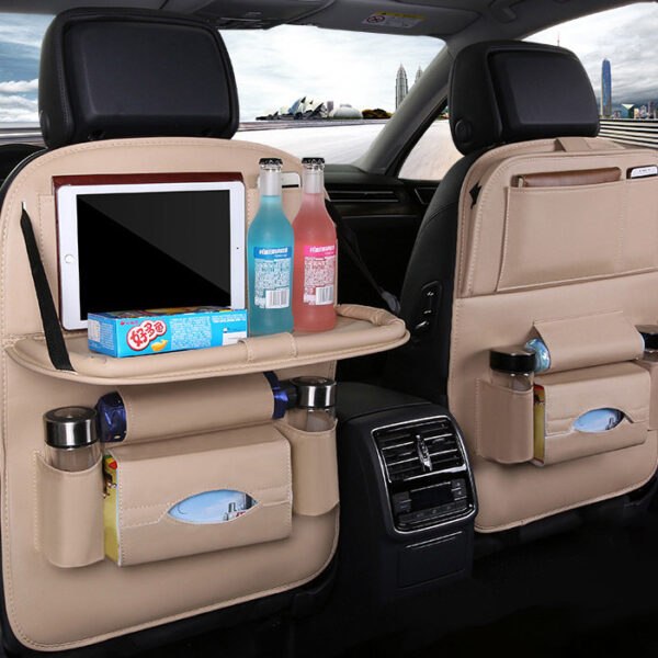 Organizer zakładany na siedzenie ma wiele przydatnych skrytek, schowków i uchwytów, a także rozkładaną półkę, której można używać w dwóch pozycjach. Akcesorium pomieści wszystko to, co chcesz mieć pod ręką, podróżując samochodem.