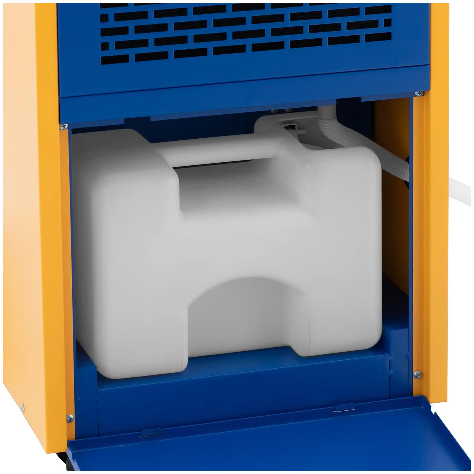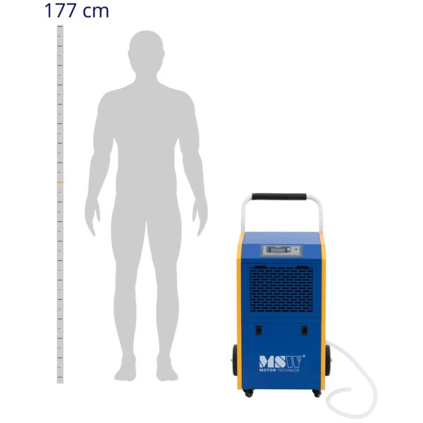 Osuszacz budowlany marki MSW pozwoli uzyskać suche ściany niezależnie od tego, czy w nowych budynkach, czy podczas prac remontowych. Urządzenie zapobiega tworzeniu się pleśni na zawilgoconych powierzchniach, co pozwala uniknąć sporych problemów w przyszłości. Dodatkowo dzięki suchym ścianom można przystąpić do kolejnych prac takich jak tynkowanie czy malowanie znacznie wcześniej. Przy ciągłej pracy osuszacz powietrza usunie do 60 litrów wilgoci dziennie, która w przeciwnym razie osadziłaby się w pomieszczeniu. Jest to zasługa przepływu do 480 m³/h i sprężarki 870 W, która obniża temperaturę powietrza. W tym celu urządzenie wykorzystuje czynnik chłodzący R290, który jest wyjątkowo przyjazny dla środowiska. Skroplona ciecz jest zbierana w pojemniku 7,5 l. Odwilżacz powietrza jest idealny do powierzchni 50 – 90 m². Osuszacz jest wyposażony w elektryczny system sterowania, który automatycznie rozpoczyna pracę przy określonych wartościach. Jest wyposażony w wydajne czujniki wilgotności i temperatury. Dodatkowo posiada licznik godzin pracy. Dla bezpieczeństwa urządzenie wyposażono w zabezpieczenia nadprądowe i przepięciowe oraz przed przegrzaniem. Dzięki kółkom i poręcznemu uchwytowi łatwo go przenieść w inne miejsce.