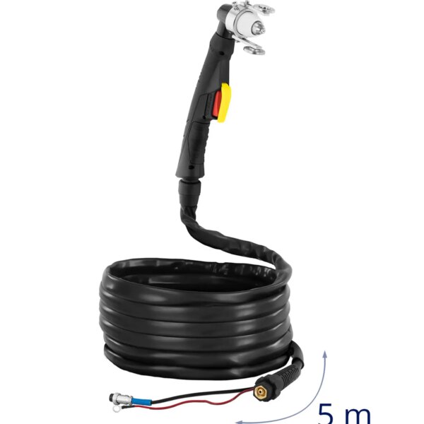 Palnik plazmowy marki Stamos Germany pozwala precyzyjnie i łatwo przeciąć różne metale. Doskonale leży w dłoni i zapewnia optymalną wydajność. Pozwala odkryć potencjał kryjący się w przecinarce plazmowej. Akcesorium można wykorzystać do pracy z prądem o natężeniu do 100 A. Imponuje też cyklem pracy na poziomie 60%. Napięcie znamionowe palnika plazmowego wynosi 500 V. Pozwala na efektywne cięcie metali i uzyskanie optymalnych wyników. Palnik plazmowy pewnie leży w dłoni, a obudowa ochronna nadaje się nawet do wymagających prac. Przy przepływie 220 l/min palnik jest niezawodnie chłodzony i wytwarza stabilny łuk plazmowy, który zapewnia optymalne cięcie w metalu. Przewód ma długość 5 m. Wyposażony jest w złącze gazowe z gwintem M16x1,5.