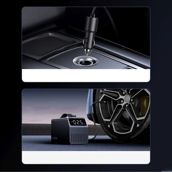 – Pompka elektryczna Ugreen 150 PSI 12V do opon samochodowych z wyświetlaczem cyfrowym – szara.