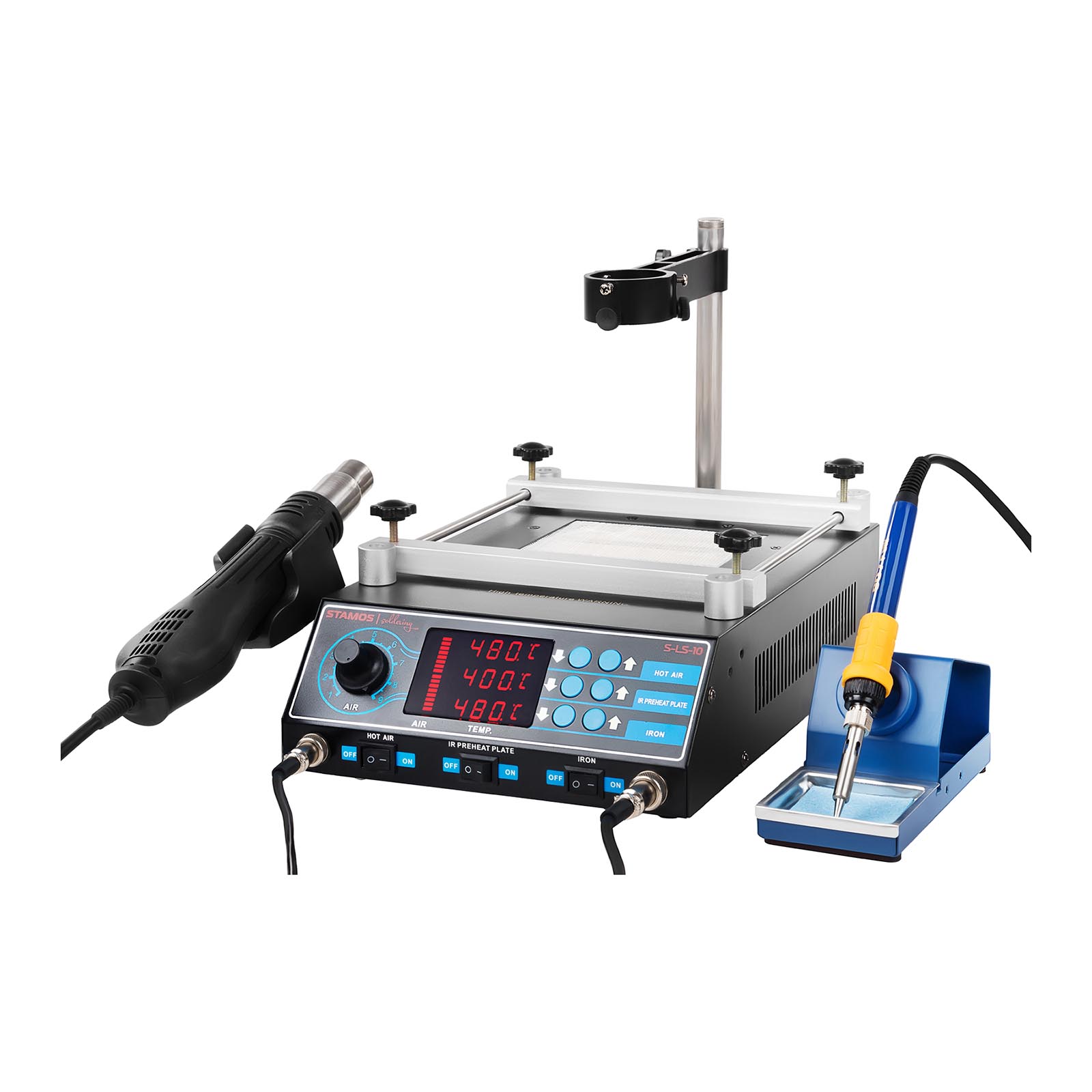Urządzenie łączy w sobie kilka funkcji niezbędnych przy wykonywaniu profesjonalnych prac lutowniczych z układami elektronicznymi takimi jak SOIC, QFP, PLCC, BGA, SMD itp. Urządzenie sterowane jest w pełni cyfrowo i kontrolowane przez zaawansowany układ PID zapewniający bardzo precyzyjne sterowanie temperaturą.