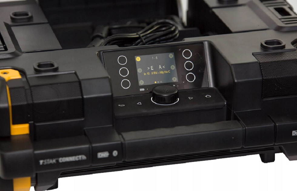 Zsilane z zasilacza sieciowego , radio ładuje akumulatory DEWALT z serii 10.8V / 18V lub 54V FlexVolt.