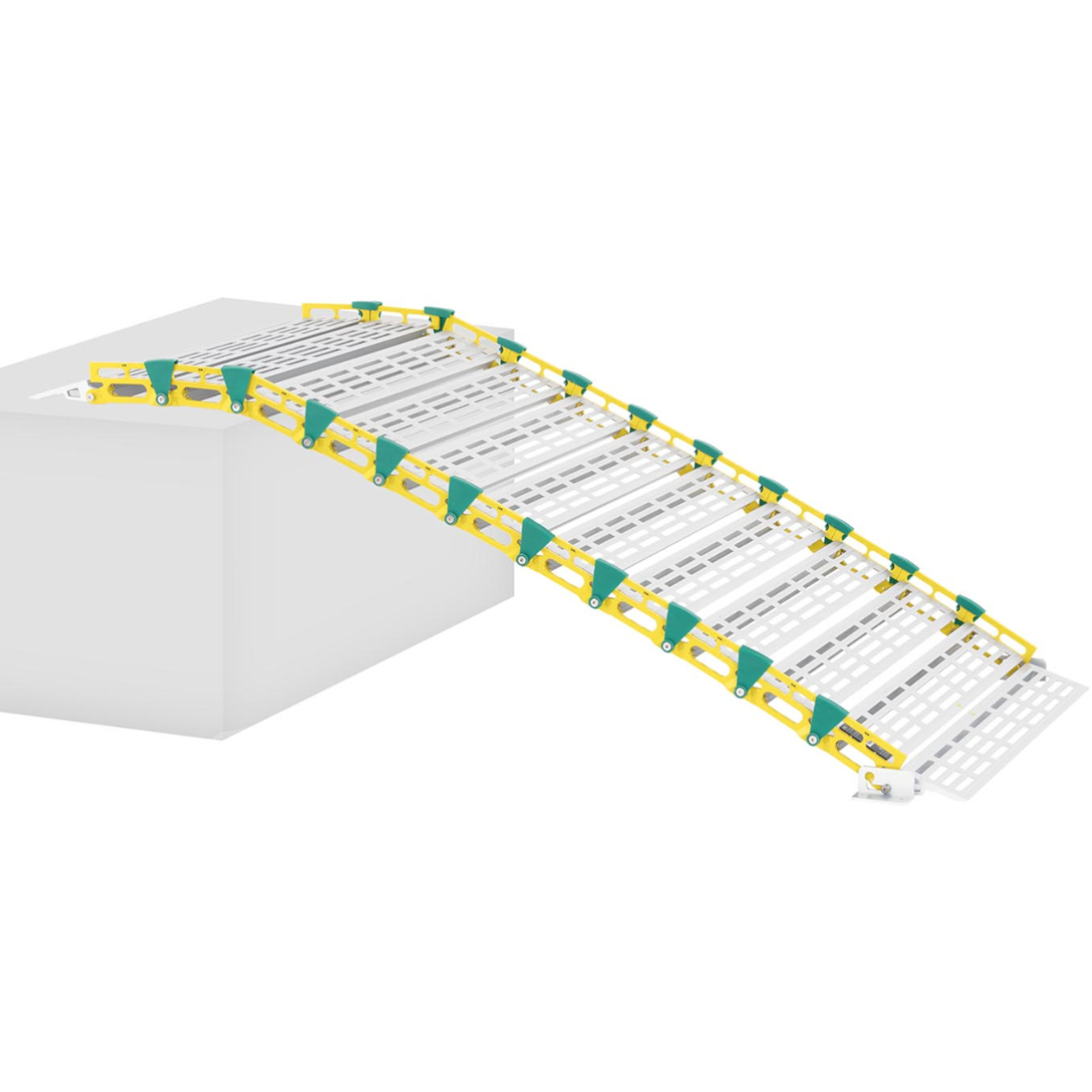 Rampa podjazdowa marki MSW sprawdzi się do wjazdu na wyższe poziomy w miejscach gdzie są schody dla wózków inwalidzkich, chodzików, kosiarek. skuterów, quadów itp. Konstrukcję urządzenia wykonano z mocnego aluminium wytrzymującego do 500 kg. Antypoślizgowa powierzchnia pasuje do gumowych kółek o średnicy większej niż 20 cm. Nie zaleca się twardych kółek mogących uszkodzić nawierzchnię. Składana konstrukcja oraz niewielka waga umożliwiają wykorzystanie rampy w dowolnym miejscu. Rozłożona ma wymiary 1965 x 914 mm a po zwinięciu śr. 535 mm x 914 mm.