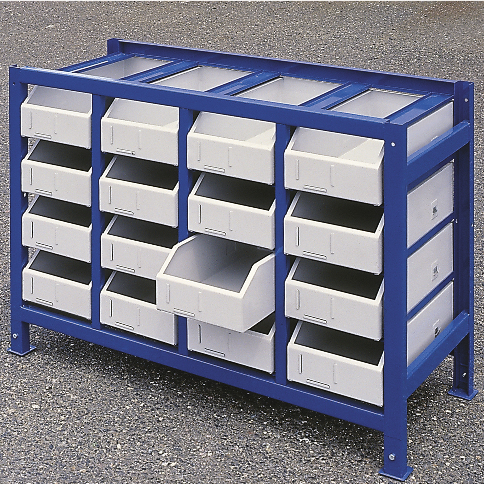 Profesjonalny specjalistyczny regał warsztatowy do segregacji przechowywania części i podzespołów. Duża ilość pojemników w zestawie daje ogromne możliwości segregacji części i narzędzi oraz ułatwia i przyśpiesza dostęp do nich. Lekkie przesuwanie szuflad, także przy maksymalnym obciążeniu umożliwiają stalowe rolki. Przed całkowitym wysunięciem szuflady zabezpieczone są blokadami. Dla łatwiejszego wyjmowania przedmiotów,przednia ścianka szuflady jest obniżona
