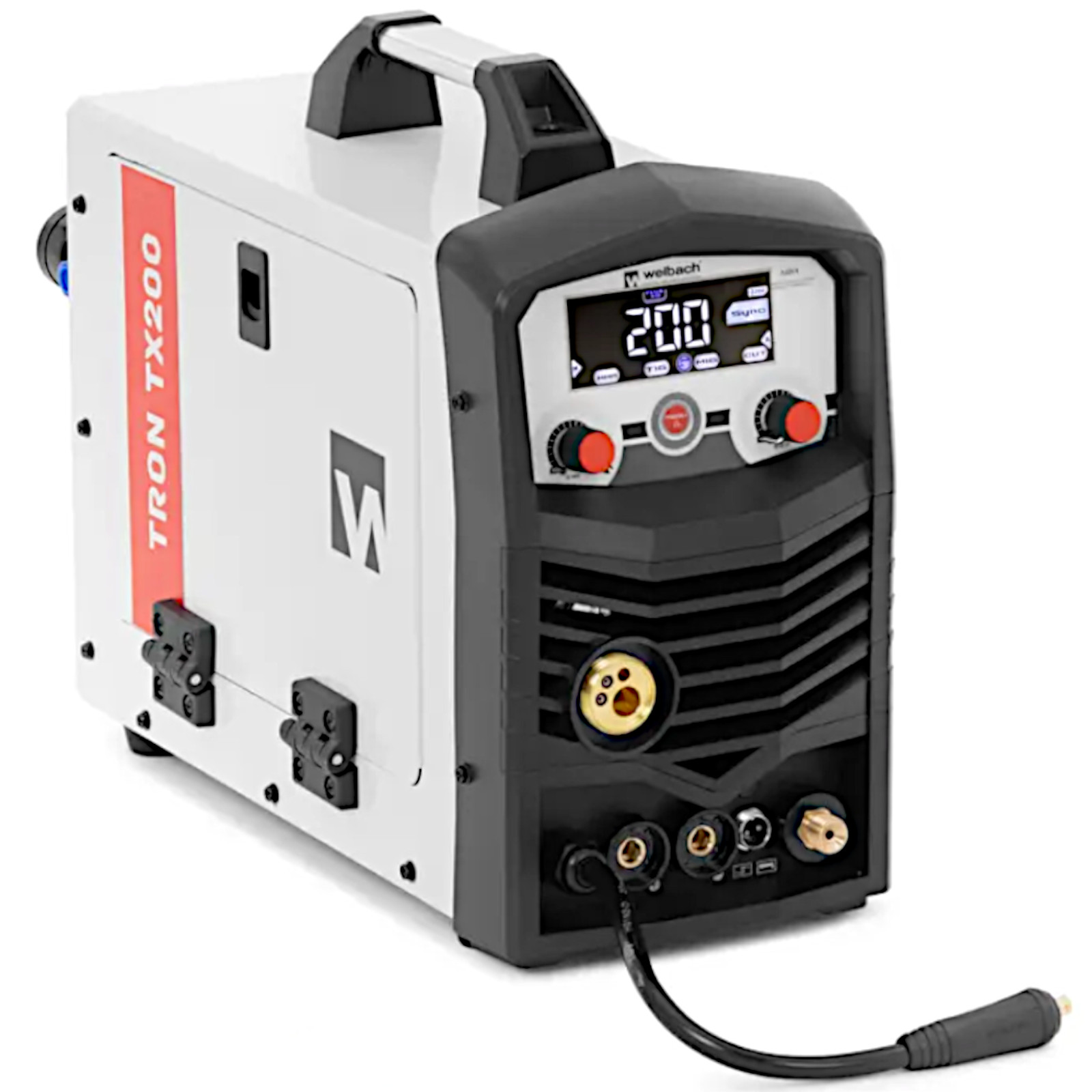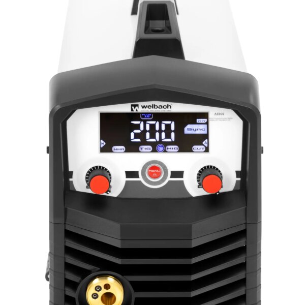 Spawarka wielofunkcyjna TRON TX200 marki Welbach to profesjonalne, wydajne i wysokiej jakości urządzenie do różnych prac naprawczych i konserwacyjnych. Pozwala spawać precyzyjnie w gazie obojętnym metodami MIG/MAG i TIG Liftarc lub elektrodami w trybie MMA do 200 A przy cyklu pracy 80%. Umożliwia także cięcie zintegrowaną przecinarką plazmową 50 A. Podstawę działania sprzętu stanowi najnowocześniejsza technologia inwertorowa, która umożliwia szybką zmianę pomiędzy cięciem, MIG/MAG, TIG Liftarc i MMA oraz niezawodnie wykorzystuje wszystkie parametry techniczne. Za pomocą cyfrowego panelu sterowania wybiera się metodę i ustawia prąd spawania. Spawanie MIG/MAG polega na łączeniu drutem umieszczonym na szpuli w wielofunkcyjnym urządzeniu spawalniczym. Podczas pracy gaz zabezpiecza spoinę. Do spawania MIG wykorzystywany jest gaz obojętny, a do MAG aktywny. Wysoka jakość spawania, wydajność i prędkość spawania posłużą do łączenia konstrukcji stalowych, a także do mniejszych prac. Do spawania TIG Liftarc także potrzeba gazu osłonowego, który jest podawany bezpośrednio na spoiny przez uchwyt spawalniczy. W przypadku cięcia plazmowego sprężone powietrze ustawiane jest na zewnętrznym reduktorze ciśnienia i określane natężenie prądu do 50 A. Aby spawać na zewnątrz, nawet przy silnym wietrze należy użyć metody MMA. Dzięki stabilnemu natężeniu prądu można połączyć różne metale, takie jak stal, żelazo, żeliwo, nikiel czy miedź. Funkcje Hot Start i Arc Force pozwalają uzyskać optymalne wyniki przy spawaniu MMA.