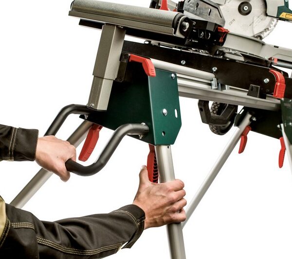 Lekka i wytrzymała podstawa do kapówek z funkcją wózka do zastosowań mobilnych również z zamontowaną pilarką
