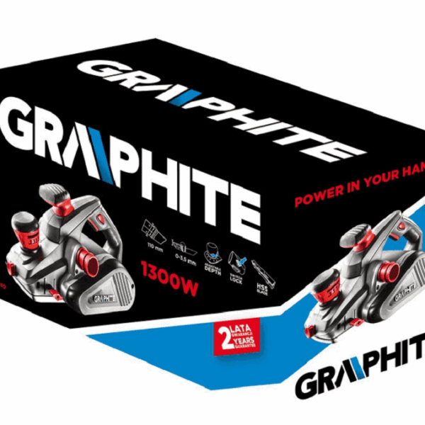 Specjalistyczny strug elektryczny GRAPHITE o dużej mocy 1300 W, przeznaczony do ciężkich prac ciesielskich i stolarskich.
