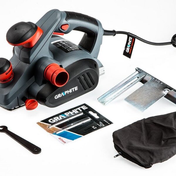 Specjalistyczny strug elektryczny GRAPHITE (nr ref. 59G678) o mocy 850 W, przeznaczony do obróbki drewna.