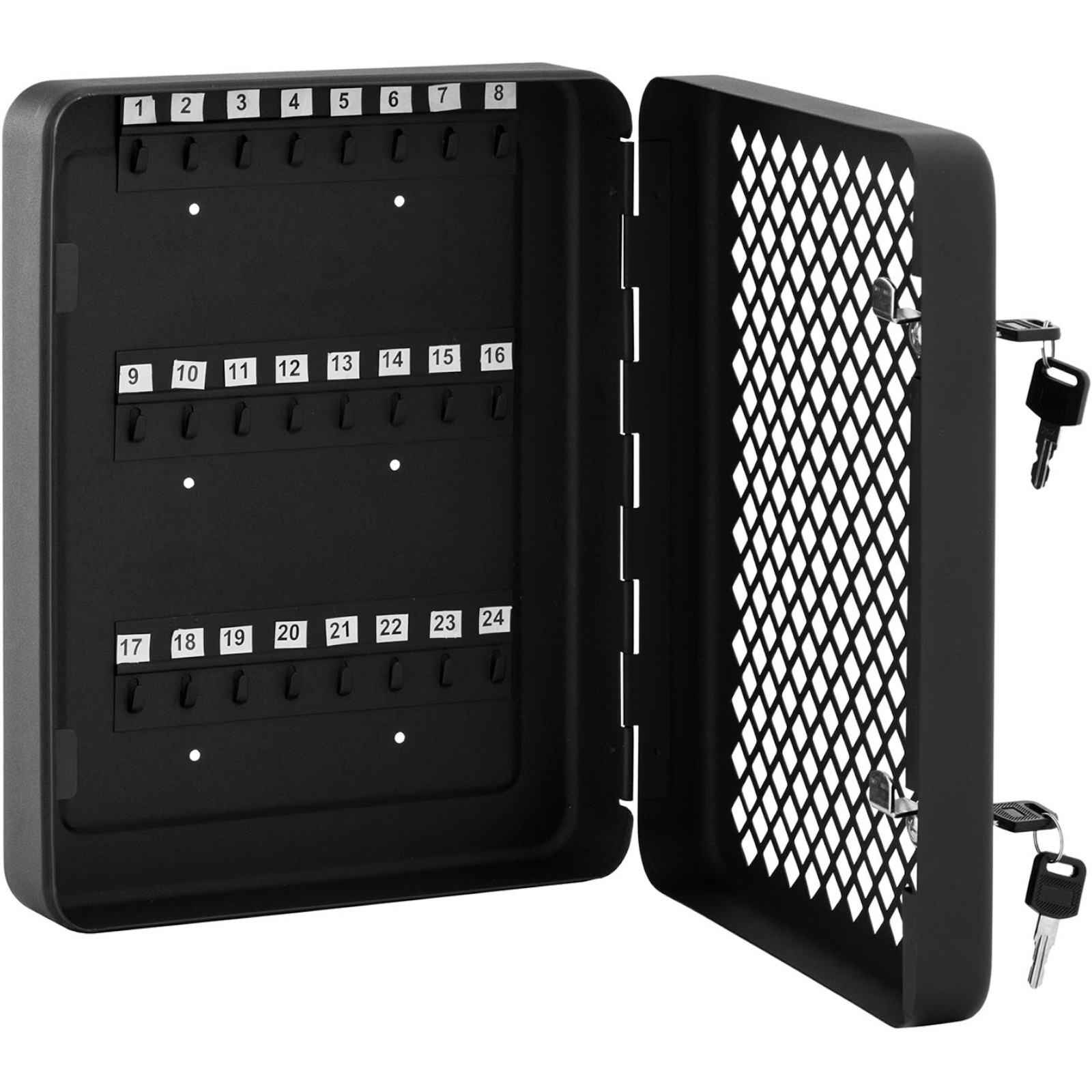 Skrzynka na klucze firmy STAMONY wykonana z żelaza idealnie nadaje się do zamontowania wewnątrz budynku. Kasetka jest zabezpieczona podwójnym zamkiem, który odblokujesz za pomocą 2 kluczy. Wnętrze skrytki o wymiarach 300 x 240 x 75 mm, pozwala na czyste i suche przechowywanie 24 kluczy na ponumerowanych zawieszkach.