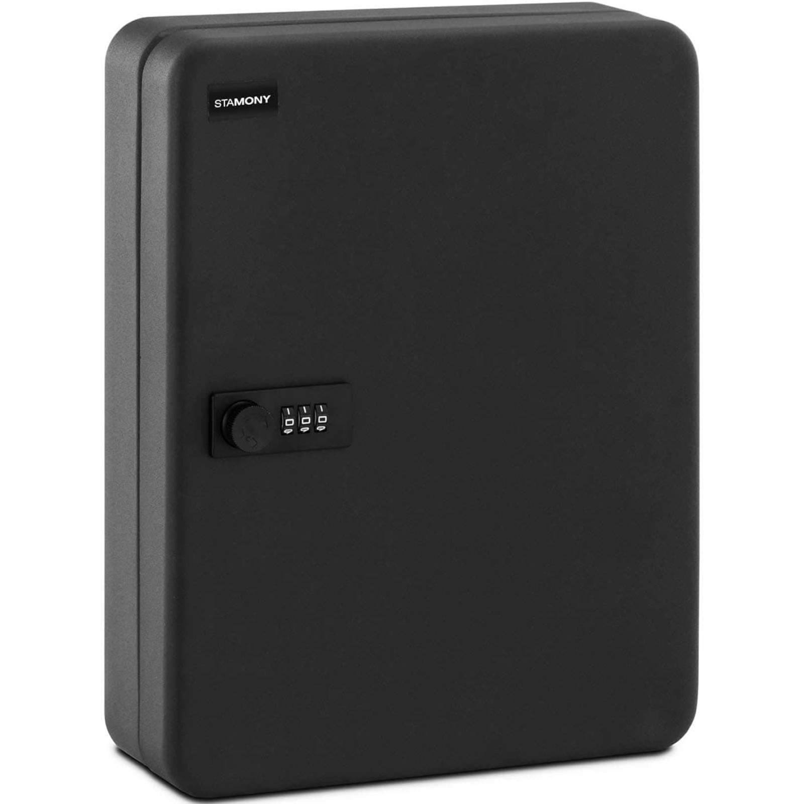 Skrzynka na klucze firmy STAMONY wykonana z żelaza idealnie nadaje się do zamontowania wewnątrz budynku. Kasetka jest zabezpieczona zamkiem, który odblokujesz za pomocą 3-cyfrowego kodu. Wnętrze skrytki o wymiarach 300 x 240 x 75 mm, pozwala na czyste i suche przechowywanie 93 kluczy na ponumerowanych zawieszkach.