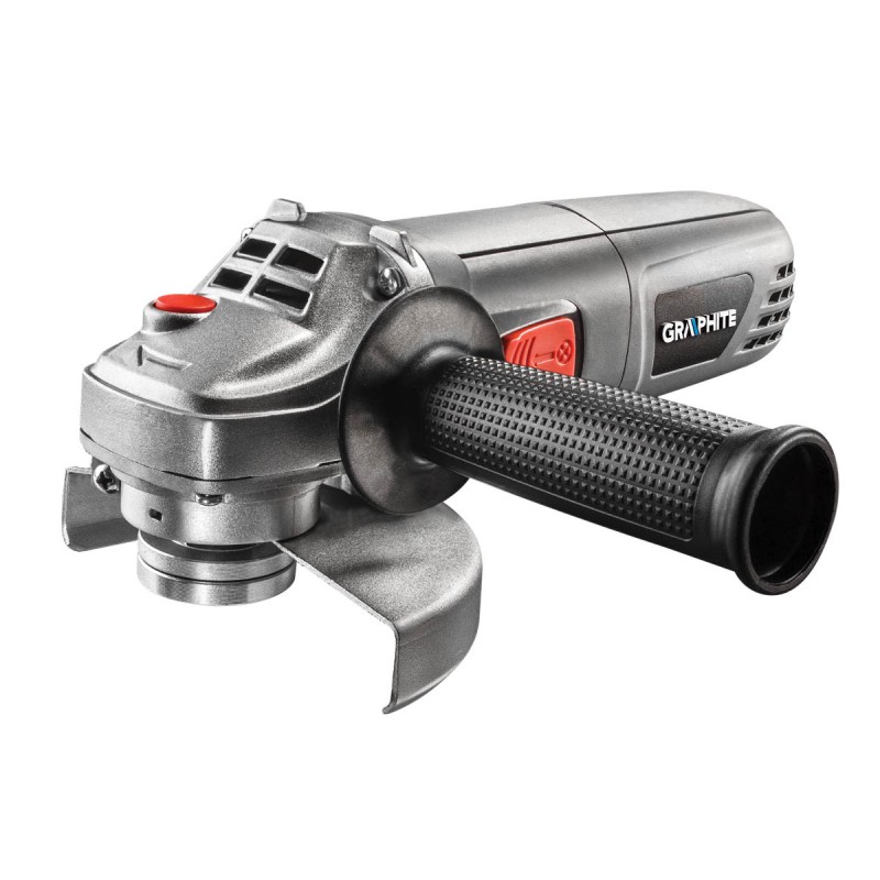 Szlifierka dla bezpieczeństwa została wyposażona w dwustopniowy przycisk z blokadą przypadkowego włączenia oraz niewystający z obudowy przycisk blokady wrzeciona.