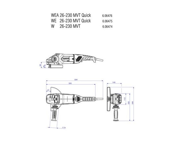 SZLIFIERKA KĄTOWA WE 26-230 MVT QUICK METABO