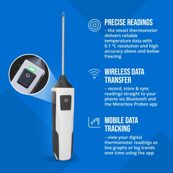 - – Aplikacja Meterbox Probes przechowuje w pamięci pomiary temperatury w celu precyzyjnego monitorowania stanu otoczenia i umożliwia skorzystanie ze szczegółowych wykresów na podstawie ich historii,