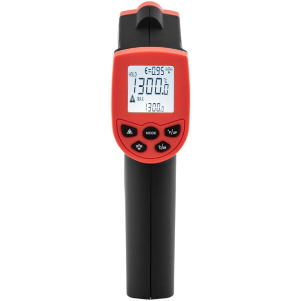 Dzięki urządzeniu można zarejestrować odczyt w granicach od -50 do 1300deg;C, co daje konsumentom ogromny zbiór obiektów nadających się do badania. W przypadku przekroczenia dopuszczalnych wartości uruchomi się alarm. Sprzęt posiada opcję zapisu danych. Automatyczne wyłączanie dezaktywuje urządzenie po 10 s niekorzystania, oszczędzając baterię. Funkcja konwersji temperatury zamienia deg;C na deg;F. Dodatkowo termometr posiada funkcję dostosowania emisyjności – od 0,1 do 1 – co zwiększa dokładność w przypadku obiektów o odmiennych typach powierzchni.