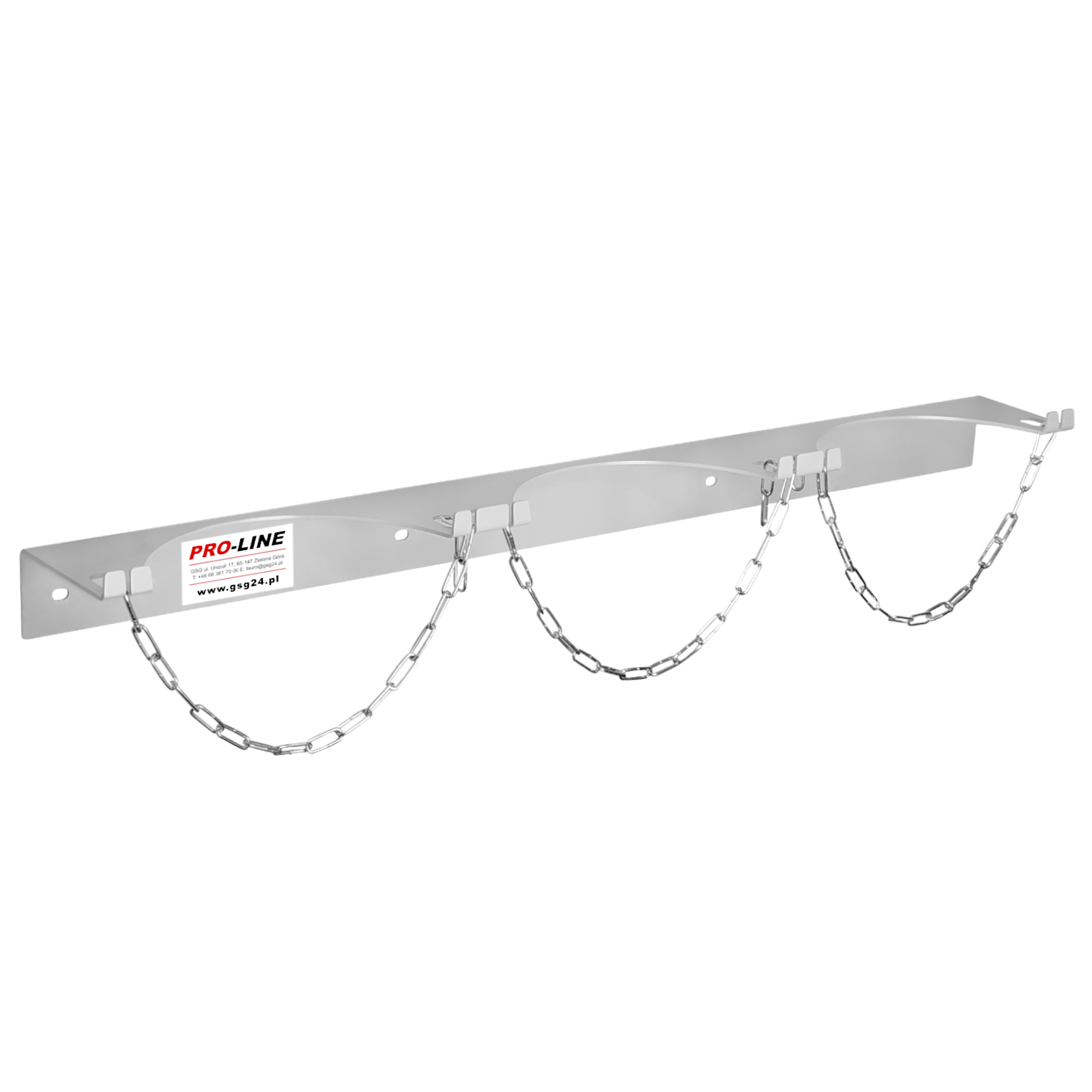 Uchwyt ścienny na 3 butle gazowe marki PRO-LINE idealnie nadaje się do bezpiecznego składowania butli w pozycji pionowej. Uchwyt do mocowania butli wyposażony został w łańcuch do zabezpieczenia. Łatwy montaż na ścianie za pomocą śrub lub wkrętów.