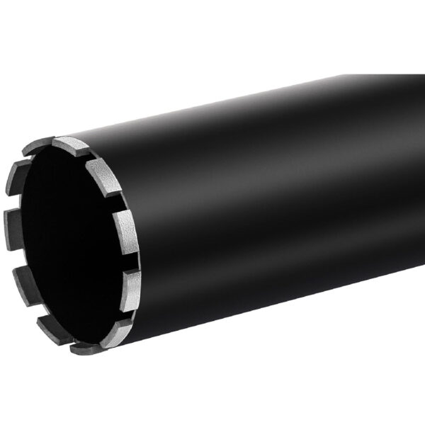 Profesjonalne wiertło diamentowe koronowe MSW o średnicy 127 mm służy do wiercenia w szczególnie twardych materiałach. Doskonale radzi sobie w betonie, betonie zbrojonym, kamieniu, granicie, wapieniu, a także w cegłach, klinkierze czy jastrychu. Diamentowe segmenty tnące umieszczone na stalowym korpusie o długości 400 mm. Koronkę do betonu wykorzystasz do wiercenia zarówno na sucho, jak i na mokro. Gwint G1 pasuje do większości popularnych wiertnic. Wiertło diamentowe koronowe zostało wykonane ze stali Q235. Jego twardość wynosi 96,3 HRB.