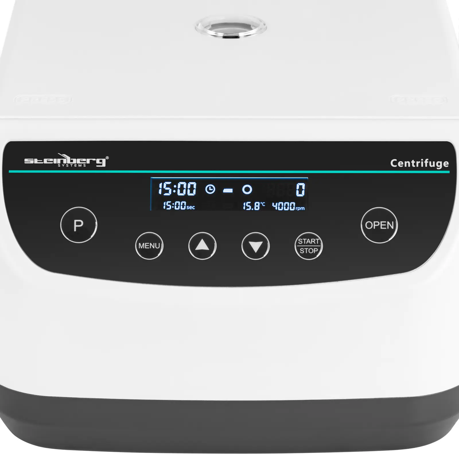 Wirówka laboratoryjna marki Steinberg Systems umożliwia przeprowadzanie precyzyjnych badań i zapewnia profesjonalne wsparcie dla szerokiego zakresu zadań. Urządzenie ma napęd elektryczny o mocy 60 W. Wbudowany rotor przetwarza jednocześnie osiem probówek o pojemności do 15 ml. Prędkość obrotowa ustawiana jest w zakresie od 500 do 4000 obr./min za pomocą mikroprocesora. Dzięki temu osiągane jest maksymalne względne przyspieszenie odśrodkowe wynoszące 2075 xg. Regulowana prędkość pozwala uzyskać odpowiednią siłę odśrodkową i niezawodnie oddzielić cząstki stałe od cieczy, którą następnie można zdekantować. Przezroczysta wkładka w pokrywie umożliwia stały podgląd próbek. Pokrywa zamyka się automatycznie podczas pracy i otwiera ponownie dopiero po zatrzymaniu wirnika. Po upływie ustawionego czasu rozlega się sygnał dźwiękowy. Wirówka posiada izolację wibracyjną oraz zabezpieczenie przed przegrzaniem. Timer określa czas pracy od 30 sekund do 59 minut. Wszystkie wartości ustawiane są za pomocą panelu sterowania, i widoczne na czytelnym wyświetlaczu cyfrowym. Dziewięć miejsc pamięci dla wstępnie ustawionych wartości ułatwia obsługę wirówki.