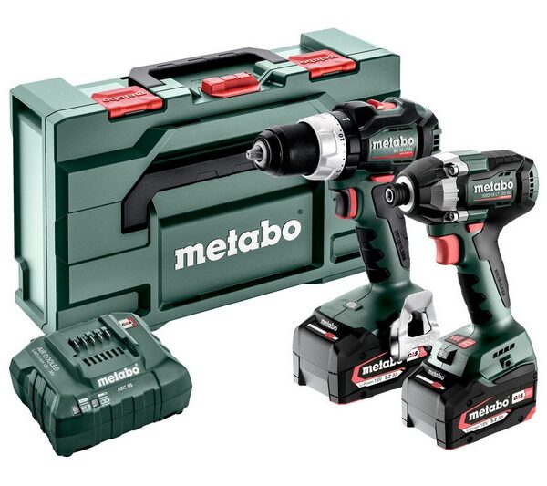 Wiertarko-wkrętarka akumulatorowa BS 18 LT BL, akumulatorowy zakrętak udarowy SSD 18 LT 200 BL, 2 akumulatory LiPOWER (18 V / 5,2 Ah), ładowarka ASC 55, metaBOX 145 L