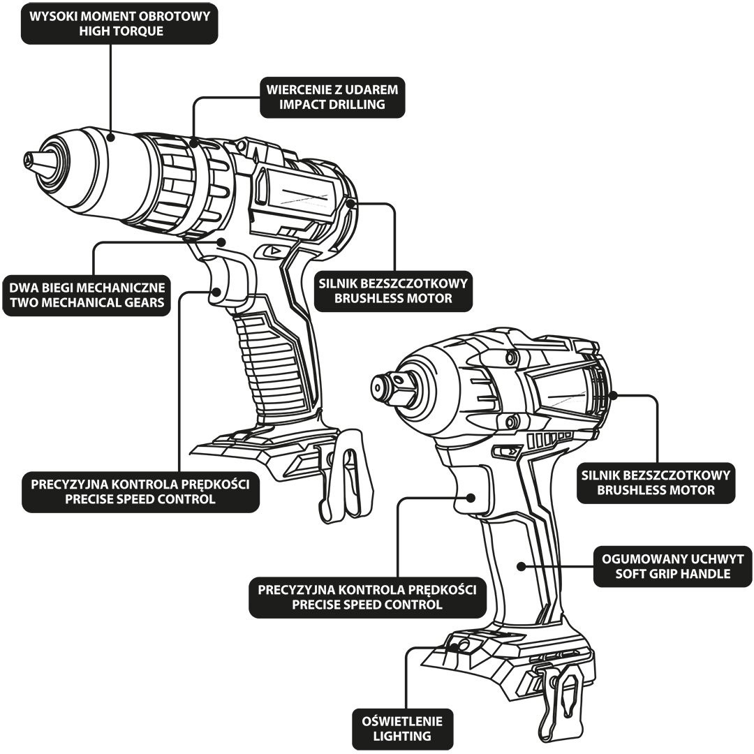 ZESTAW E+: KLUCZ UDAROWY Z WIERTARKO-WKRĘTARKA BEZ AKUM.