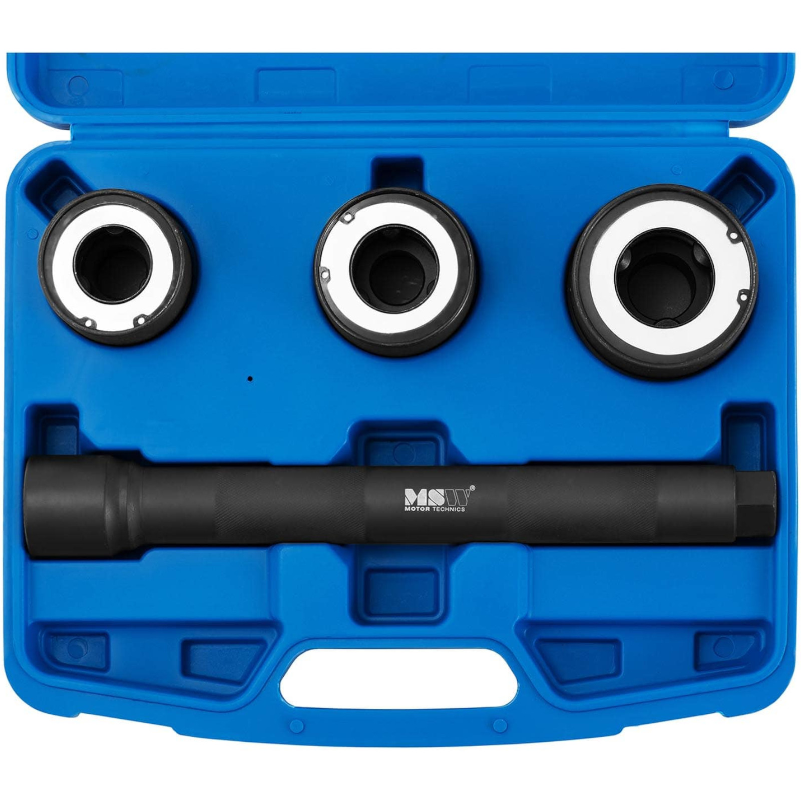 Klucze do drążków kierowniczych marki MSW umożliwiają profesjonalny demontaż tego elementu w wielu samochodach bez konieczności wyjmowania go z przegrody. 4-częściowy zestaw pozwoli uniknąć skomplikowanych i czasochłonnych napraw. Składa się z trzech wymiennych kluczy o różnych średnicach (30-35 mm, 35-40 mm, 40-45 mm) oraz uchwytu. Pozwalają one idealnie dopasować całość do wielu modeli pojazdów. Dzięki otwartej konstrukcji można bez problemu montować również dłuższe elementy. Aby bezpiecznie odkręcić drążek kierowniczy, należy najpierw wybrać odpowiednią średnicę i przymocować klucz do narzędzia. Następnie ostrożnie wsunąć ściągacz drążka kierowniczego na główkę. Na końcu należy użyć grzechotki, aby poluzować element. Zestaw kluczy został wykonany z wytrzymałej stali węglowej i gwarantuje wysoki poziom odporności oraz trwałości nawet po wielu latach użytkowania. Cały komplet jest umieszczony w praktycznej walizce z tworzywa sztucznego, która ma wgłębienie na każdą pojedynczą część.