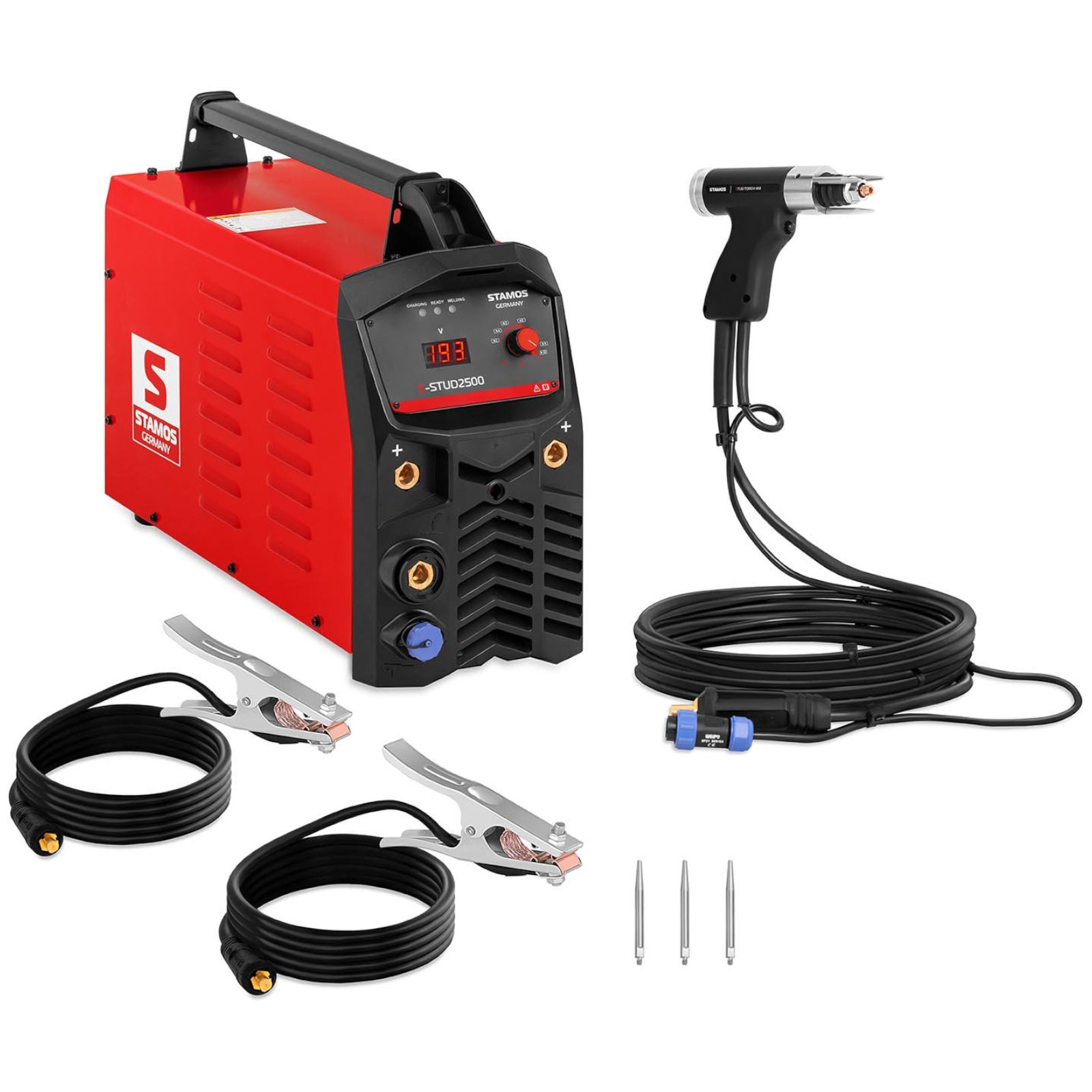 Zgrzewarka kondensatorowa marki Stamos Germany umożliwia wydajne i szybkie przypawanie śrub, trzpieni, gwoździ i kołków do powierzchni z metalu. Urządzenie S-STUD2500 nadaje się do prac związanych z metaloplastyką i montażem np. blach, izolacji i ogrodzeń. Model pozostawia wysokiej jakości zgrzewy.