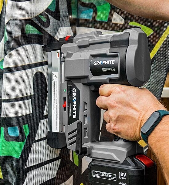 Zszywacz akumulatorowy 2 w 1 GRAPHITE to urządzenie łączące funkcje zszywacza i gwoździarki. Zszywacz przyspiesza pracę, ponieważ maksymalna prędkość wbijania zszywek lub gwoździ to aż 100/min. Urządzenie ma beznarzędziową regulację głębokości oraz funkcję strzału pojedynczego i ciągłego. Zszywacz jest zaopatrzony w wielofunkcyjny wskaźnik LED, oświetlenie, a dla większej wygody użytkowania ogumowany uchwyt.