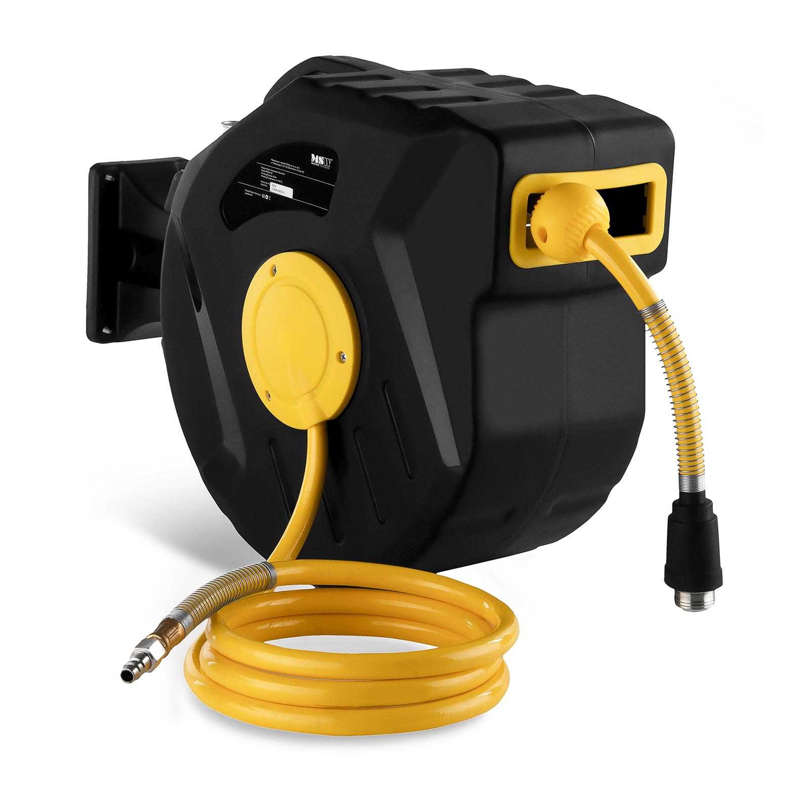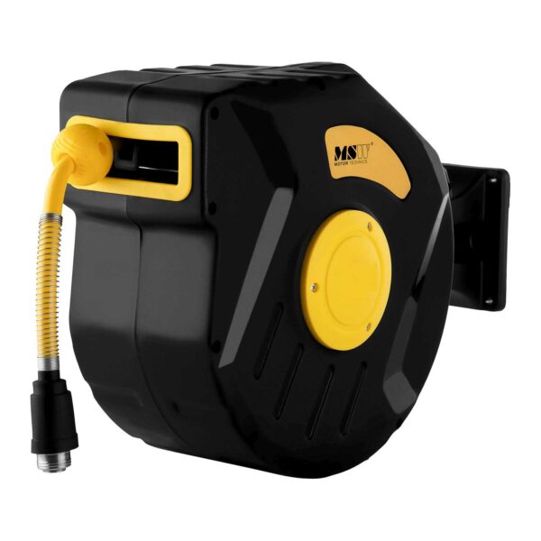Wąż ciśnieniowy o długości 20-metrów ułatwia swobodne poruszanie się w trakcie pracy z użyciem narzędzi na sprężone powietrze, a mechanizm zatrzaskowy zablokuje przewód po osiągnięciu pożądanej długości. Ponadto funkcja automatycznego zwijania (oparta na sprężynie) szybko schowa przewód po zakończeniu zadania, minimalizując tym samym ryzyko potknięcia się lub przypadkowego uszkodzenia przewodu oraz ułatwiając utrzymanie czystości w miejscu pracy.